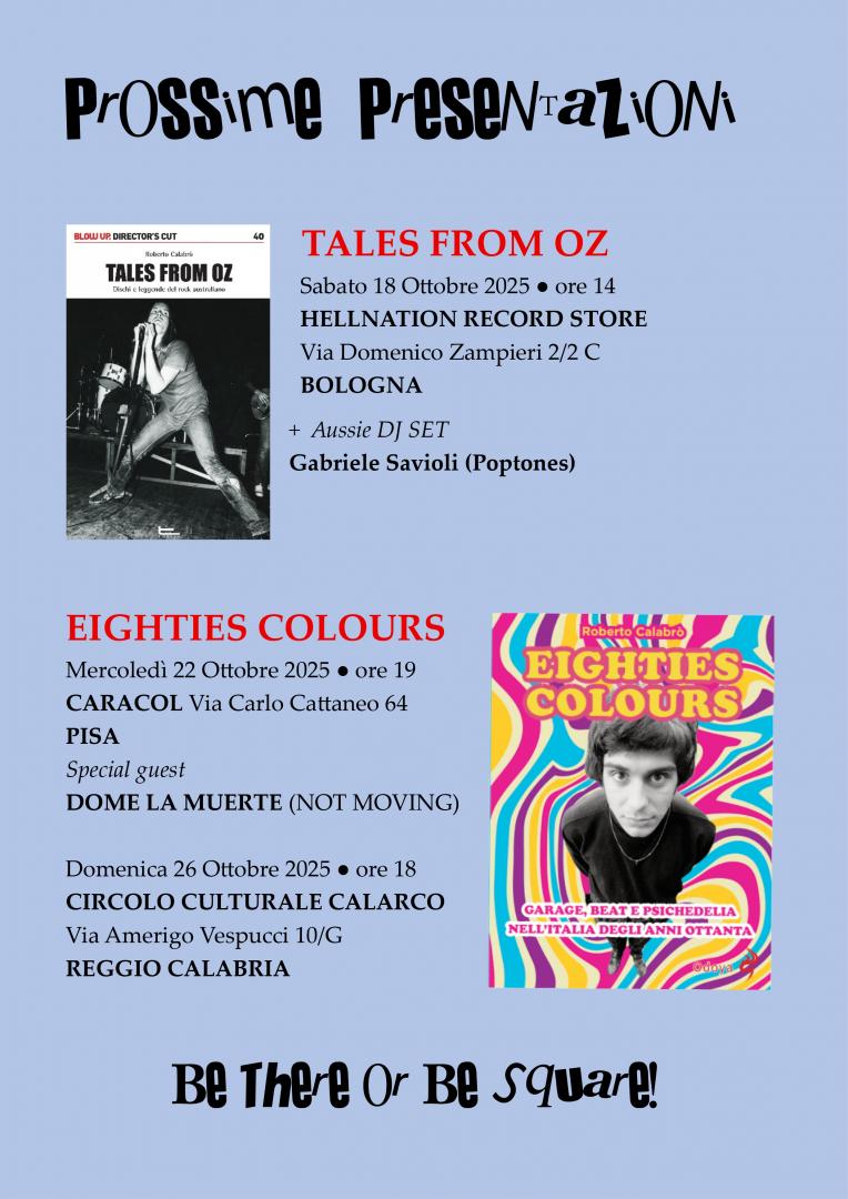 Amici di Bologna, Pisa e Reggio Calabria nei prossimi giorni sarò in Italia per presentare TALES FROM OZ e la nuova edizione di EIGHTIES COLOURS.