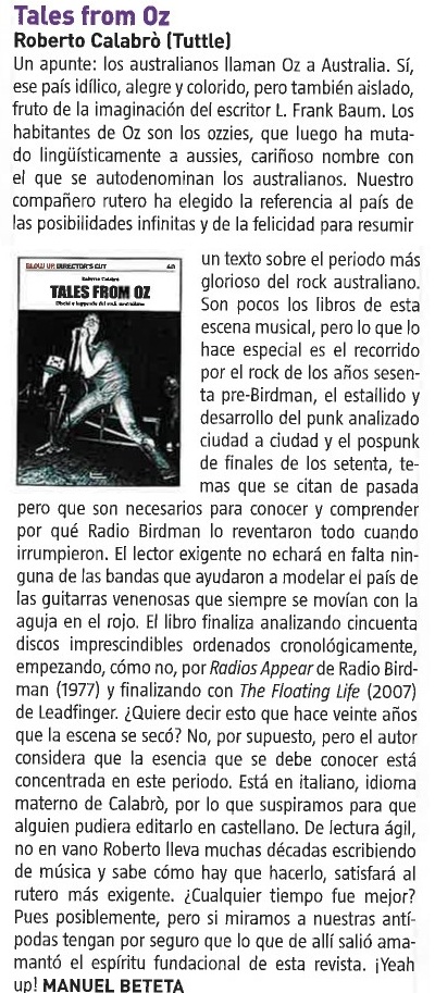 "Tales From Oz" ripercorre la storia della scena rock dei nostri antipodi sin dagli anni Sessanta, passando per il punk e il post-punk, soffermandosi sull'esplosione internazionale degli anni ‘80 e raccontando ciò che accadde nei due decenni successivi, quando l'attenzione di stampa e pubblico si spostò colpevolmente altrove. Perché, nonostante tutto, la terra dei canguri non ha mai smesso di produrre grandi band e dischi fantastici. Sino ai nostri giorni.